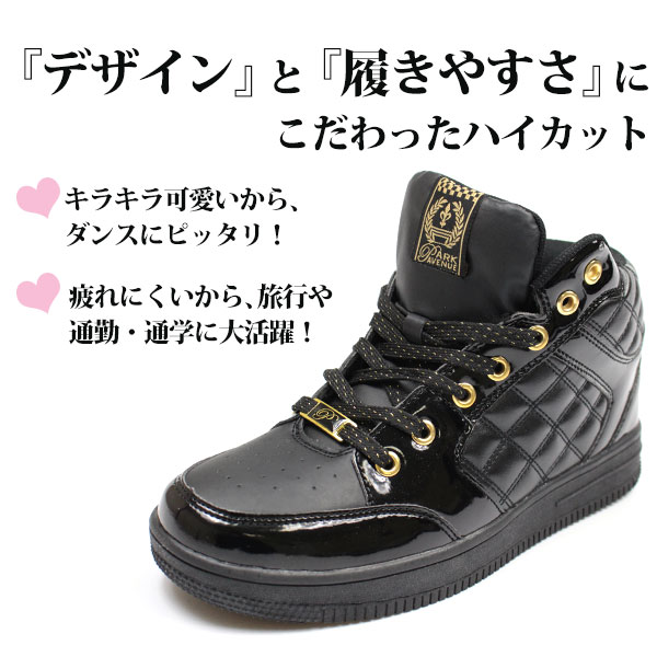 スニーカー レディース 靴 ハイカット パークアベニュー PARK AVENUE PA-211 ダンス かわいい おしゃれ シンプル キルティング加工 キラキラ カジュアル 白 黒 軽い ふわふわ クッション 疲れない 通勤 通学 仕事 デイリー ギフト