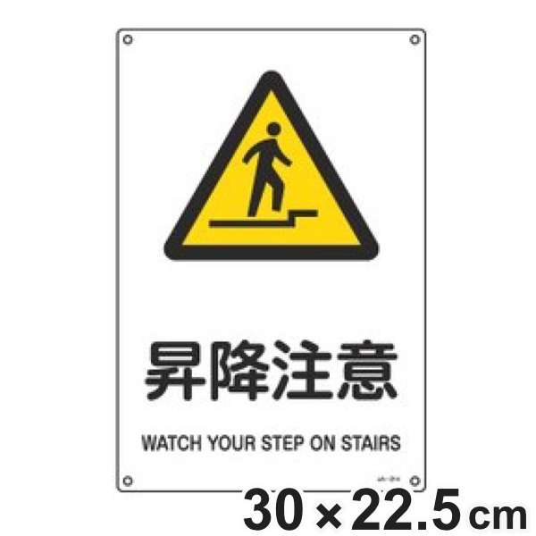 JIS安全標識板 警告用 「 昇降注意 」 30×22.5cm Sサイズ ( 看板 危険標示 注意標識 JIS 安全標識 図記号 標識 表示 安全用品 注意 警告 注意警告 危険 日本語 英語 二カ国語表記 昇降 )