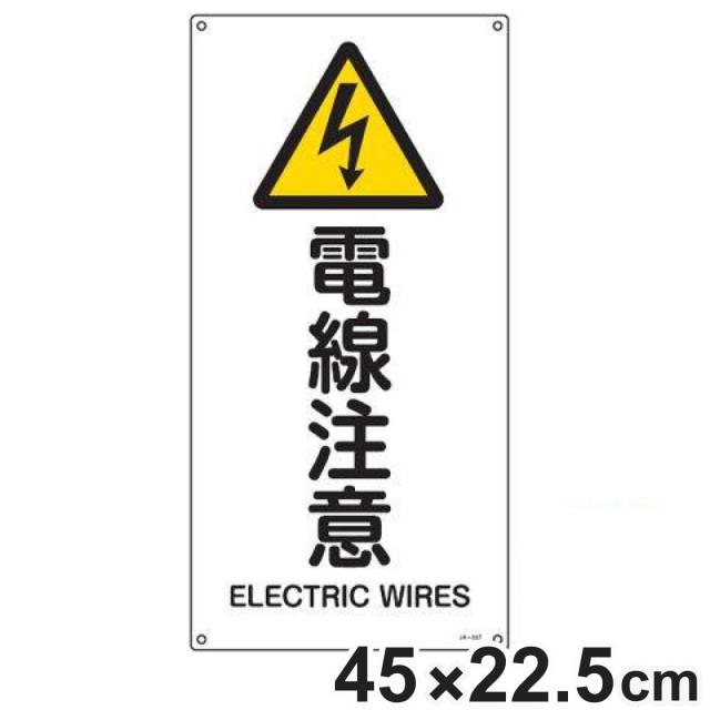 JIS安全標識板 警告用 「 電線注意 」 縦書き 45x22.5cm Sサイズ ( 看板 危険標示 注意標識 JIS 安全標識 図記号 標識 表示 安全用品 注意 警告 注意警告 危険 日本語 英語 二カ国語表記 電圧 )