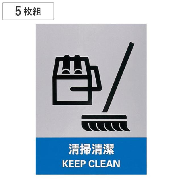 安全標識ステッカー 「清掃清潔」 英文字入り 5枚組 16x12cm ( 標示シール 英語 )