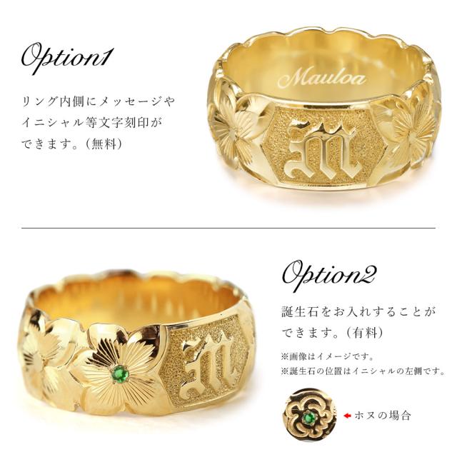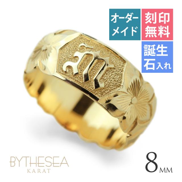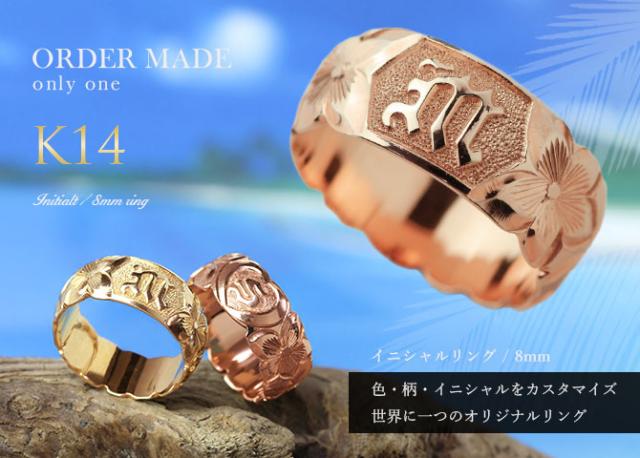 イニシャル オーダーメイド ハワイアンジュエリー リング 刻印 無料 誕生石入れ可 1号〜27号 幅8mm K14ゴールド ハート 結婚指輪 指輪 ギフト対応可 マリッジリング リング メンズ レディース 誕生日 プレゼント 【品番:KJGR-008-8】
