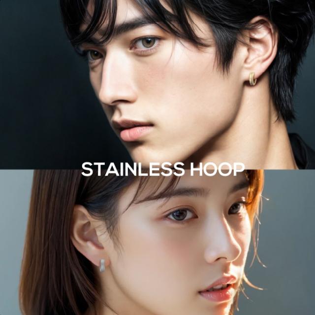 どんなシーンでも似合うスタイリッシュ&シンプルなフープスタイルのステンレスピアスです。