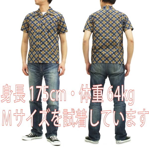 MWS オープンシャツ 80's 幾何学模様 メンズ 半袖シャツ 1514002 #77ネイビー 新品