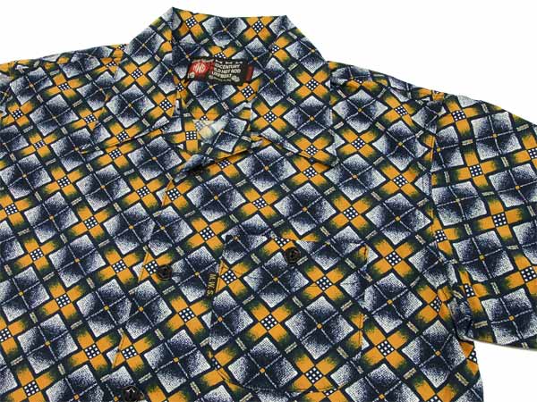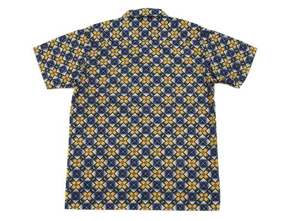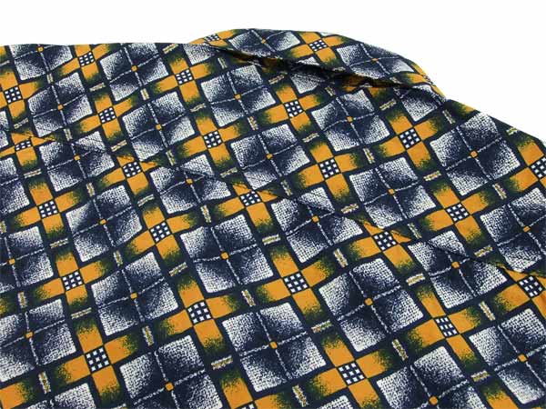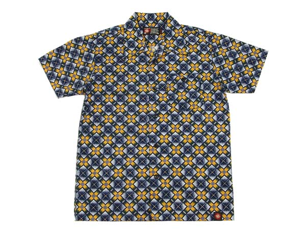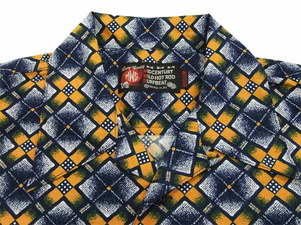 ●送料・代引き手数料無料●形はオープンカラー(開襟タイプ)のフルオープンシャツで、トップボタンはループで留めることができる仕様です。スソは水平にカットされたスクウェアボトムです。素材はコットン100%のシーチング生地です。高密度に織りあげられた、ハリのあるドライで清涼感のある、軽くて薄手の夏向けの生地です。プリントパターンは、バティック柄(幾何学模様)の80'sテイストの総柄です。生地にはワンウォッシュ加工がかけられ、くすんだ色落ち感・フェード感・ビンテージ感が表現されています。左胸にはフラップなしのボタン付きポケットが設けられ、左胸ポケットにはMWSの飾りネームタグ(ピスネーム)が縫い付けられています。ボタンにはMWSオリジナルのダイヤ猫目ボタンが使用されています。作品名は「MWS1514002 BATIK PATTERN OPEN SHIRT」です。ホットロッド、サーフテイストなデザインが魅力です。