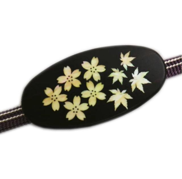 帯留め 帯止め 貝象嵌 濃茶木目台桜紅葉 日本製 箱入り 着物 きもの 浴衣 帯どめ 帯飾り 帯かざり