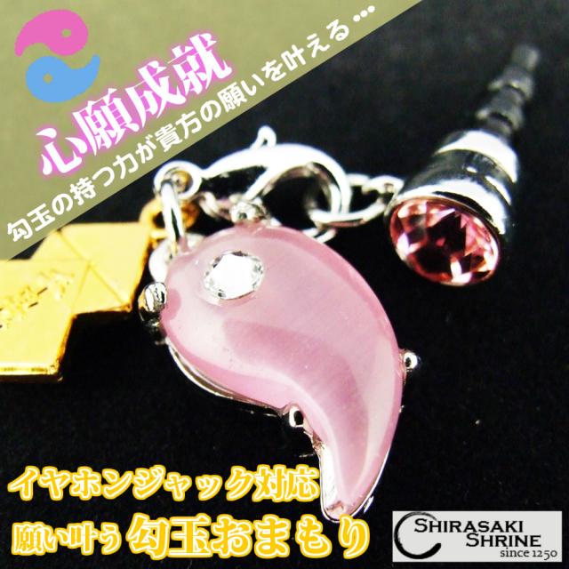 願い叶う 勾玉のお守り ピンク イヤホンジャック対応 白崎八幡宮で祈願済み