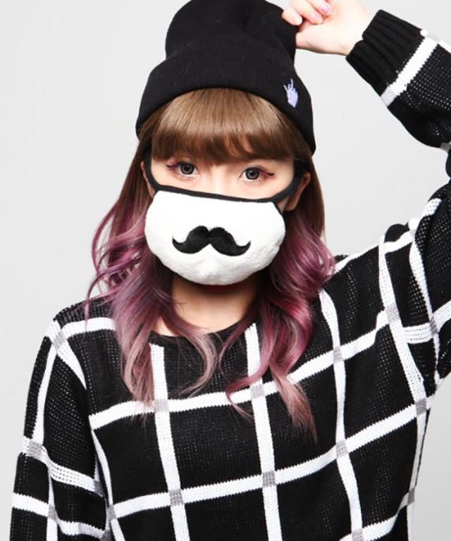 表地にぬいぐるみ素材を使用した、ヒゲモチーフのマスク。