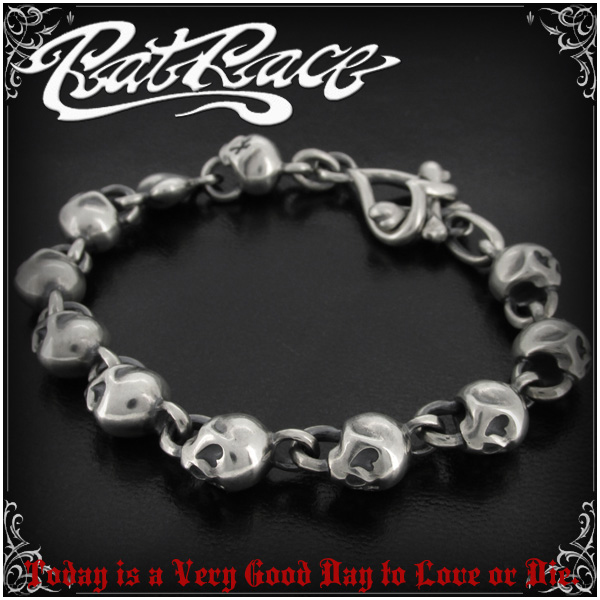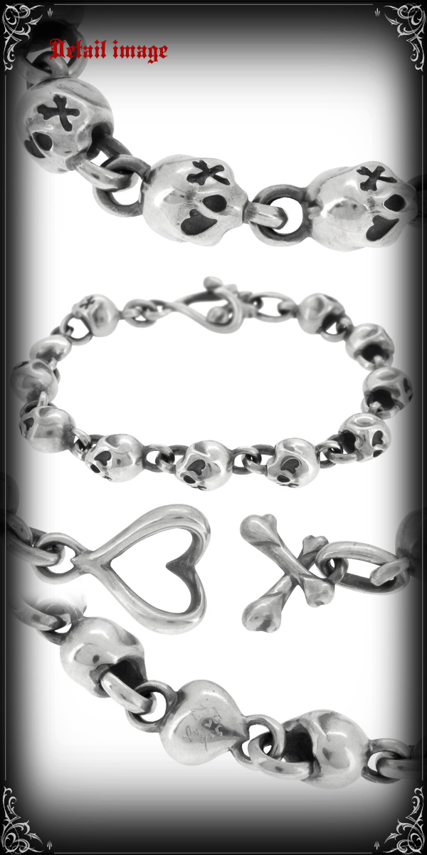 スカルの連結の間に1コマだけハートのコマがあるのもポイント★丸いスカルが可愛く女性にもお勧め!
