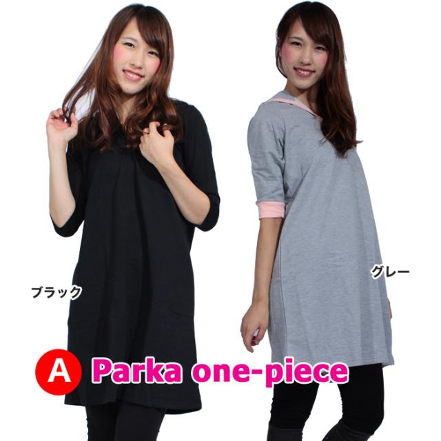 【A】ドルマンワンピース【B】パーカーワンピース【C】7分袖ボーダーワンピース【D】チュニックワンピース
