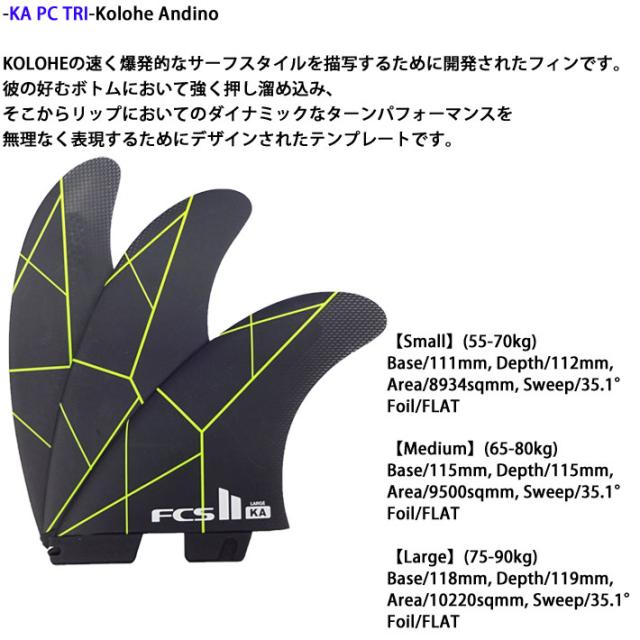 [店内ポイント20倍中!!] FCS2 FIN エフシーエス2 フィン トライフィン KA PC TRI コロヘアンディーノ パフォ—マンスコア [S/M/L] 3FIN ショートボード用 サーフボード スラスター