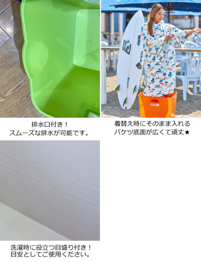 サーフアイテムなどアウトドア&マリンスポーツ用品全般を収納できるビッグサイズのバケツ。