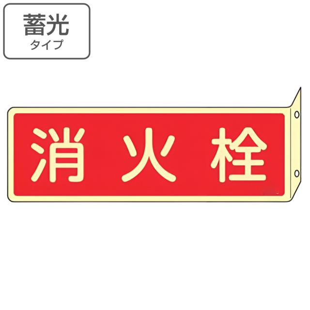 消火器具標識 「 消火栓 」 蓄光文字 L型両面標示 横型 ねじ止めタイプ 8×24cm ( 看板 標示板 防災用品 突き出しタイプ 消火器具 標識パネル 標示パネル 標示プレート 夜光 蓄光 光る 標識 プレート プレート標識 表示 標示 )