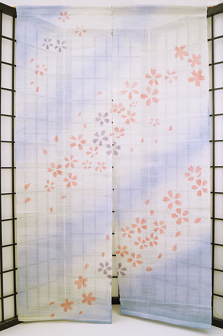 暖簾-のれん 麻100% 桜青色ぼかし n-431