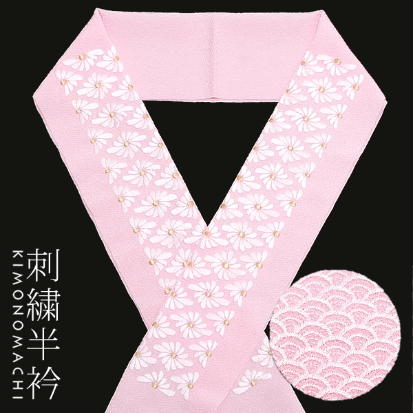【Prices down】2way刺繍 半衿「ピンク 青海波 菊菱の刺繍」半襟 刺繍衿 振袖衿 成人式 (E-1111) 振り袖 [送料無料]ss2512wkm65