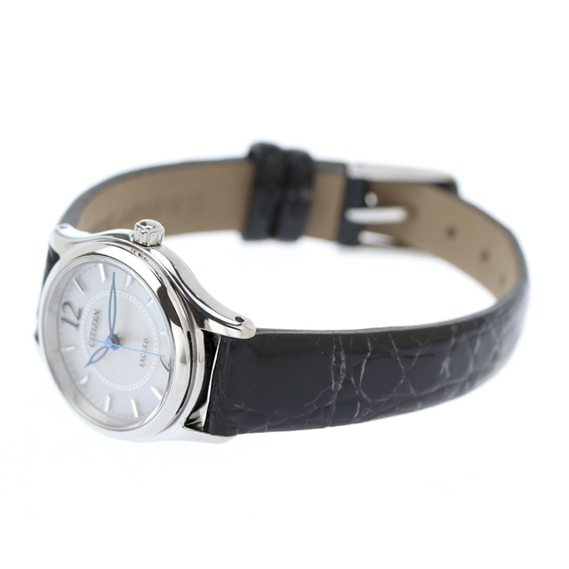正規品 7年保証キャンペーン 送料無料 シチズン エクシード ソーラー レディース 腕時計 EX2060-07A CITIZEN EXCEED シルバー×ブラック レザーベルト 洗練された上品さを醸し出すエコ・ドライブ搭載モデルです。小振りなケースや細身のレザーベルトが腕元を女性らしく飾ります。バーインデックスを採用した文字盤はすっきりとしたデザインになっており、視認性も十分に確保。フォーマルからカジュアルまで、さまざまなファッションにマッチします。 発売日:14年3月発売
