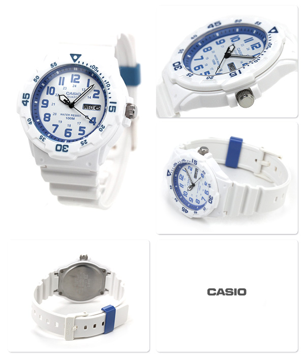 7年保証キャンペーン カシオ スタンダード 海外モデル MRW-200HC-7B2DF CASIO Standard 腕時計 クオーツ ホワイト 鮮やかなカラーリングが目を引くダイバーズデザインのモデル。視認性の良いアラビア数字を採用した文字盤や、3時位置に配置された日付・曜日表示が実用性を確保。腕元のアクセントとしてもオススメです。 日本未発売モデル