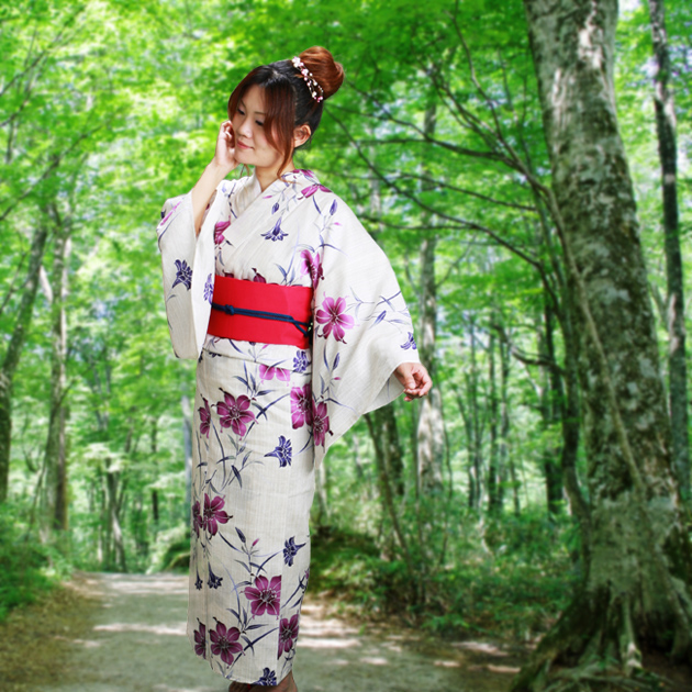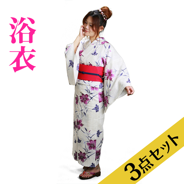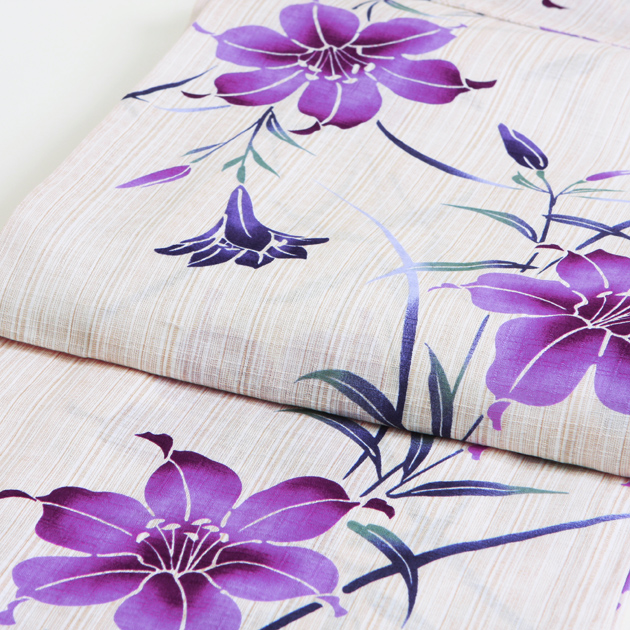 浴衣 レンタル NT-y045 浴衣3点セット☆浴衣・帯・下駄☆クリーム色/ゆり 愛され 送料無料