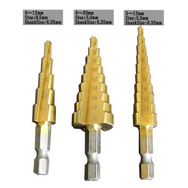 チタンタケノコ ステップドリル 六角軸 3 本 セット ケース 穴あけ DIY 電動工具 パーツ 電動ドリル パーツ インパクト 穴あけ