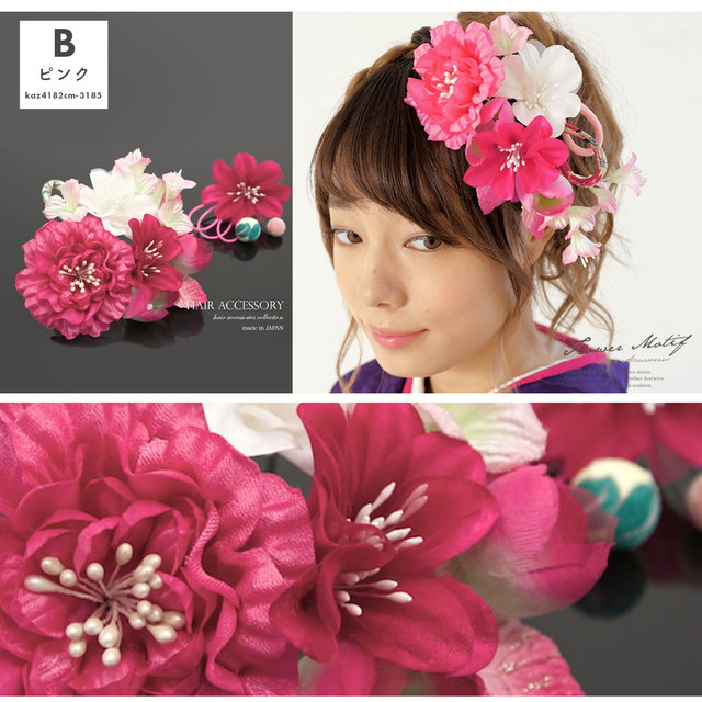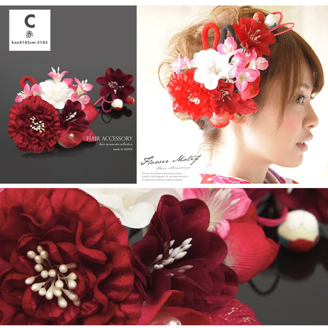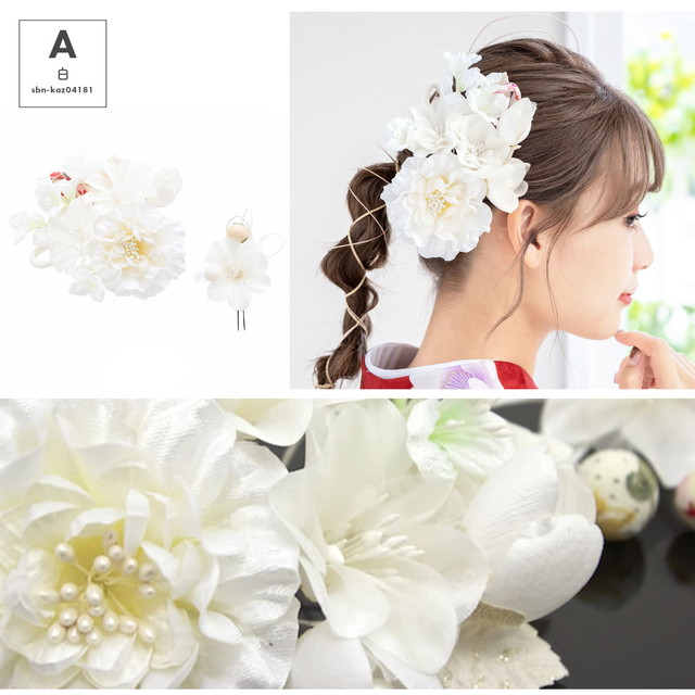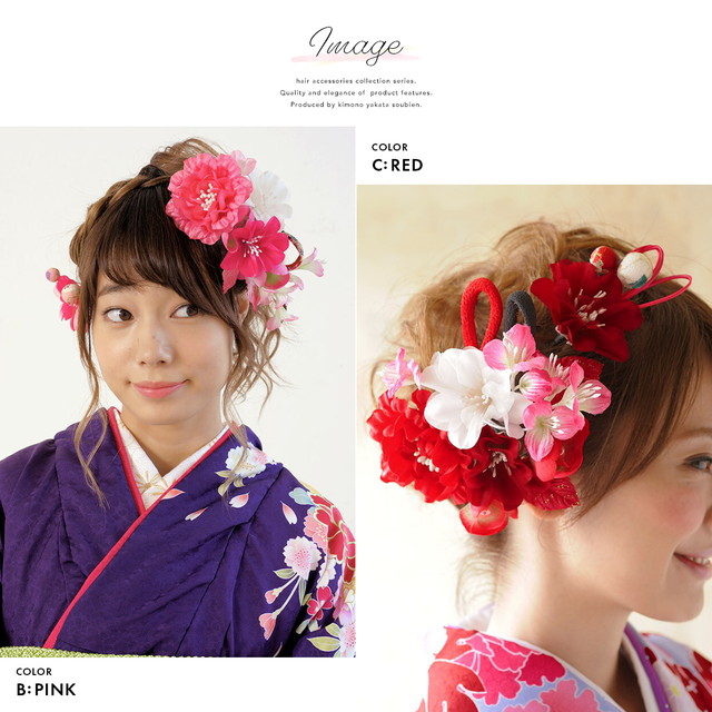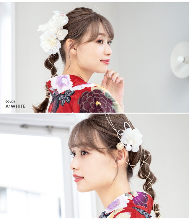 成人式 髪飾り 成人式の髪飾り 卒業式 2点セット 白 ピンク 赤 花 フラワー 和柄 縮緬 玉飾り 振袖 袴 髪留め ヘアアクセサリー 和装