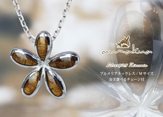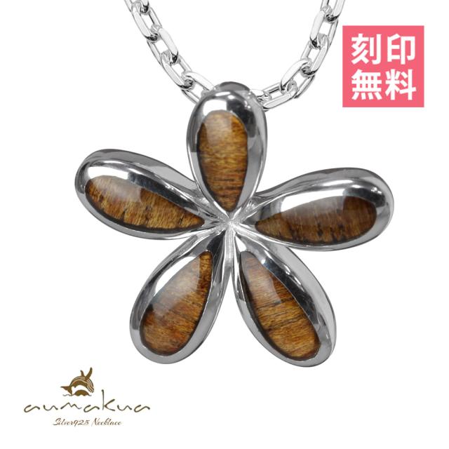 ハワイアンジュエリー コアウッド ネックレス 刻印 無料 コアウッド プルメリア Mサイズ シルバー925 ロジウムコーティング ギフトラッピング可能 チェーン 長さ選べる aumakua メンズ レディース 誕生日 プレゼント ホワイトデー 卒業式 入学式 【品番:CG-033-61-03】