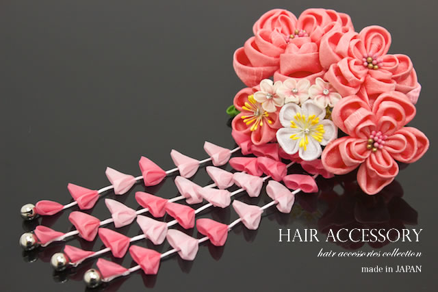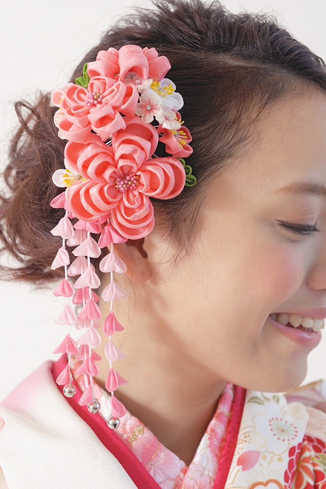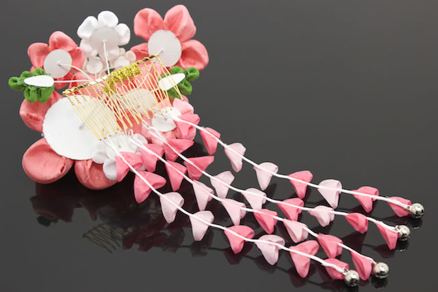 成人式の振袖や卒業式の袴にオススメなつまみ細工のコーム式髪飾り。