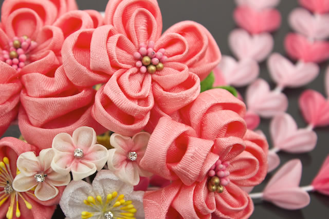 はんなりとした質感のつまみ細工は、職人の手でひとつひとつ丁寧に作り上げられクオリティの高いデザインです。