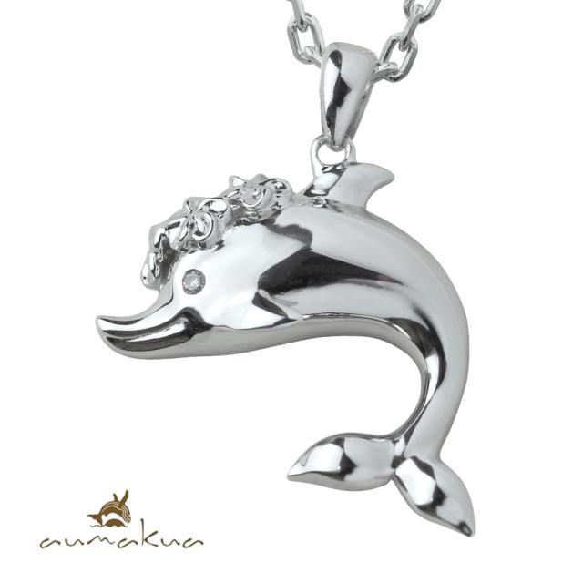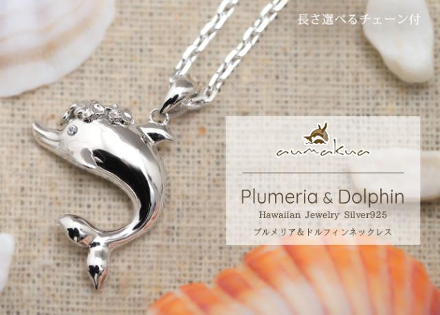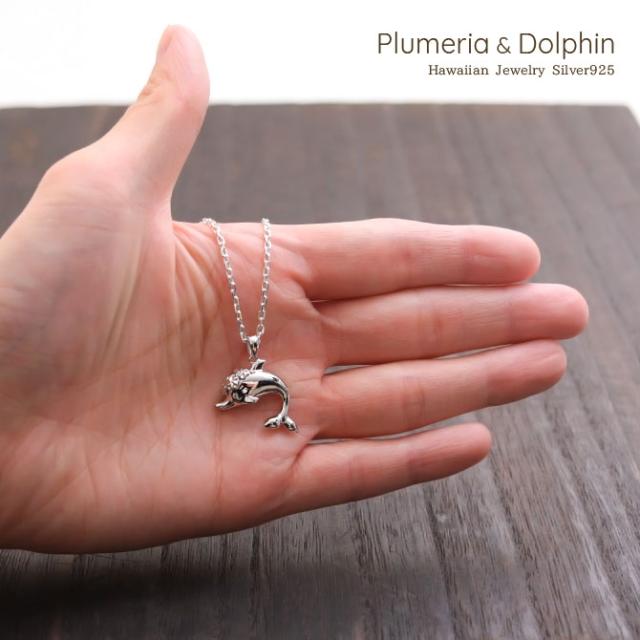 ハワイアンジュエリー シルバー ネックレス ドルフィン イルカ プルメリア花冠 ネックレス ロジウムコーティング シンプル シルバー925 ギフトラッピング可能 チェーン 長さ選べる aumakua メンズ レディース 誕生日 プレゼント 入学式 就職 お祝い 【品番:CG-003-11-02】
