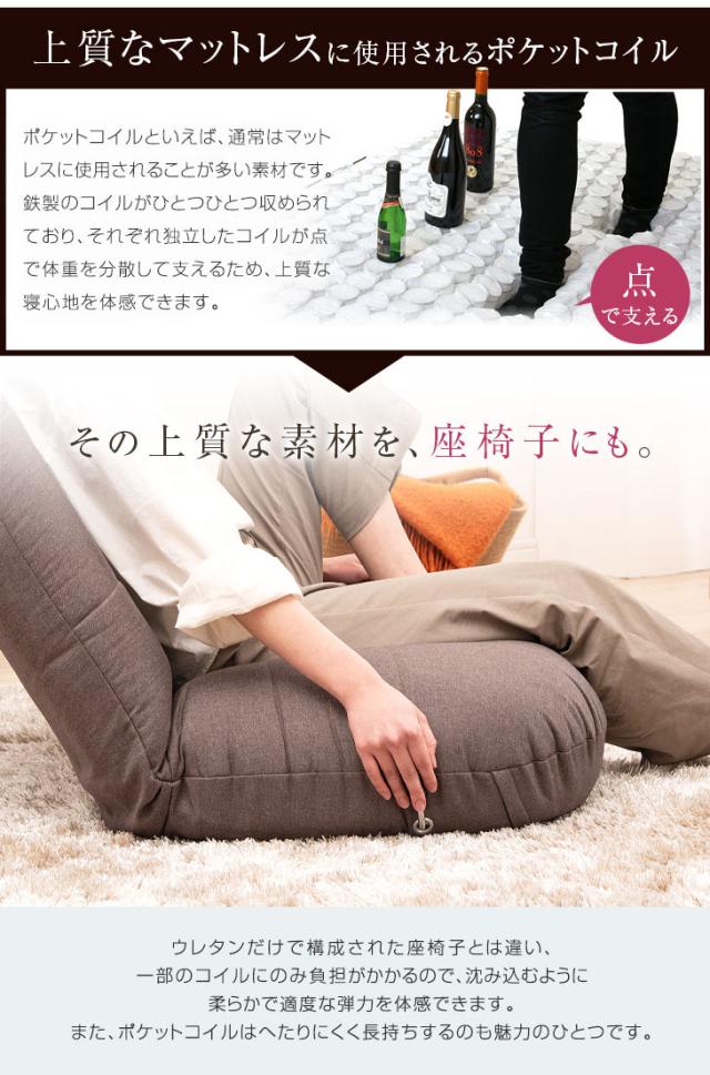 BIG 座椅子 へたりにくい!ポケットコイル あぐら座椅子 リクライニング チェアー コンパクト 座いす 座イス ソファー ソファ 1人掛け 一人掛け 布地 いす イス 椅子 チェア