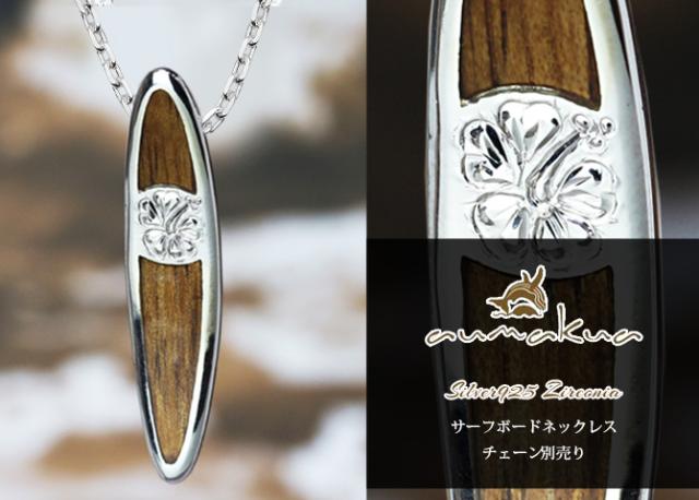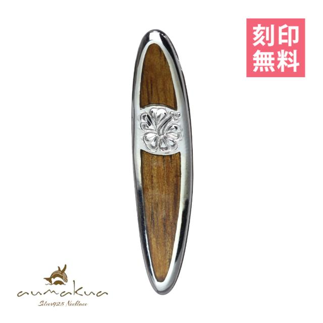 ハワイアンジュエリー コアウッド 刻印無料 ペンダントトップ サーフボード ハイビスカス コアウッド ロジウムコーティング aumakua シルバー925 ネックレス チェーン別売 メンズ レディース 誕生日 プレゼント 母の日 【品番:098-61-01】
