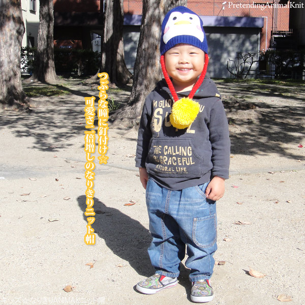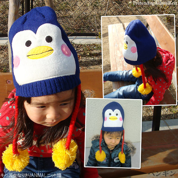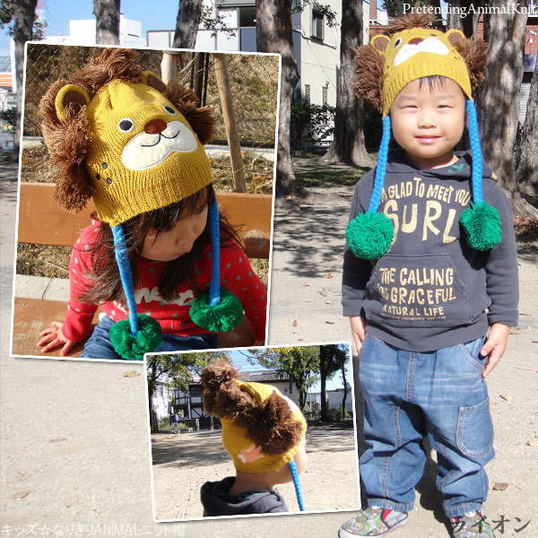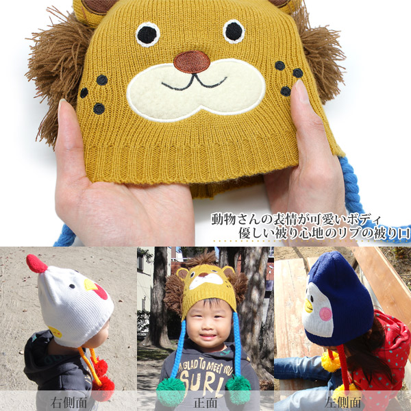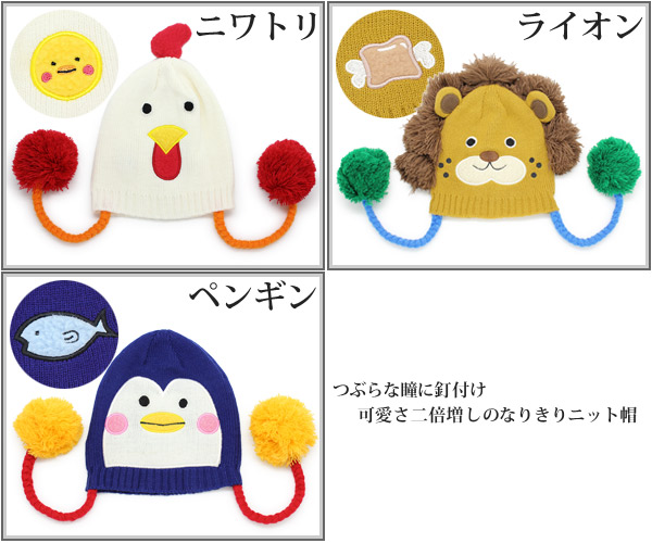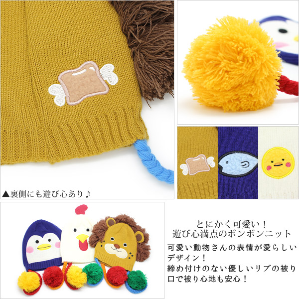 ニット帽 ボンボン [メール便可] キッズ 帽子 子供用 秋冬 アニマル 動物 / キッズ なりきりANIMALニット帽