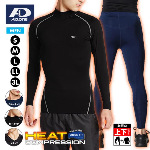 トレーニング 冬用 インナー 上下セット 発熱保温 コンプレッション メンズ 長袖 コンプレッションウェア アンダーシャツ 加圧シャツ