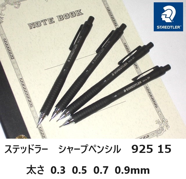 超書きやすい ステッドラーシャープペンシル 92515 黒軸 太さ4種類 550円 0.3 0.5 0.7 0.9mm 製図 勉強 仕事 925 15 メール便 OK