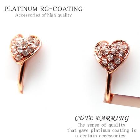 ハート型イヤリング ピンクゴールドcr耳元キラキラでお洒落に パーティー 結婚式 プレゼント レディース【 fp251 】