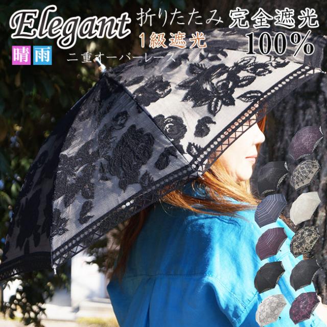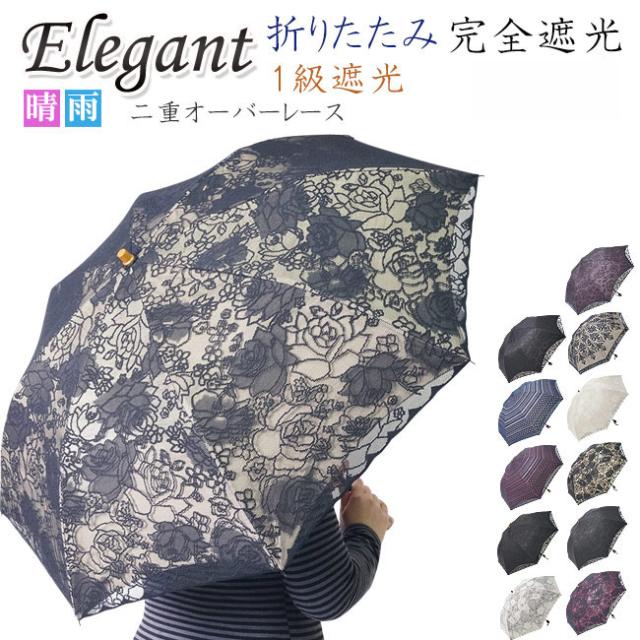 日傘 折りたたみ 1級遮光 オーバーレース エレガント二重張り 晴雨兼用傘 UVカット加工付 母の日 まだ間に合う 母の日_fk