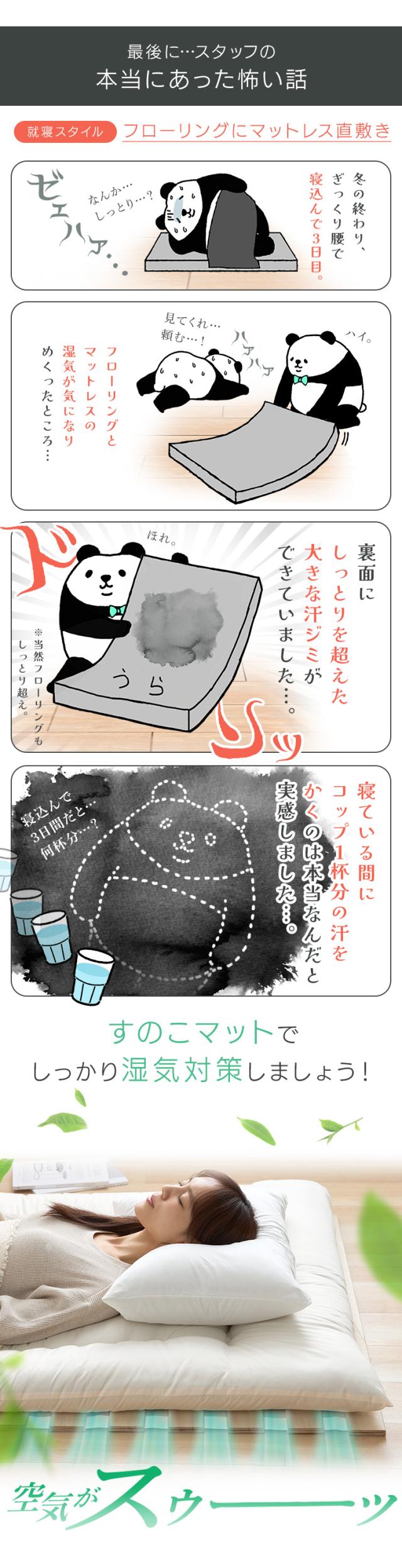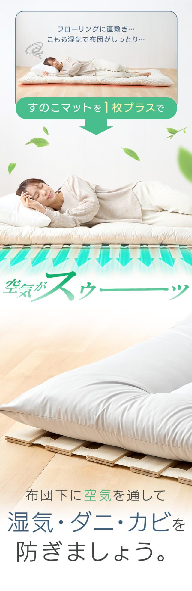 寝汗等によるカビの発生を防ぐ、通気性の高いすのこマット(シングルサイズ)です。