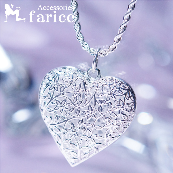 透かしフラワー(花)&ツタデザインヨーロピアンぷっくりハート レディースペンダントネックレス【フレンチロープチェーン付き】