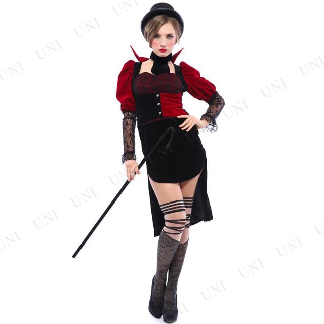 コスプレ 仮装 手品師 黒/エンジ M コスチューム 仮装 コスプレ衣装 職業 制服 マジシャン 調教師 女性用M 大人 ハロウィン ベロア生地 なりきり