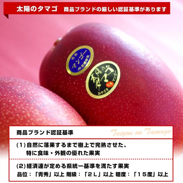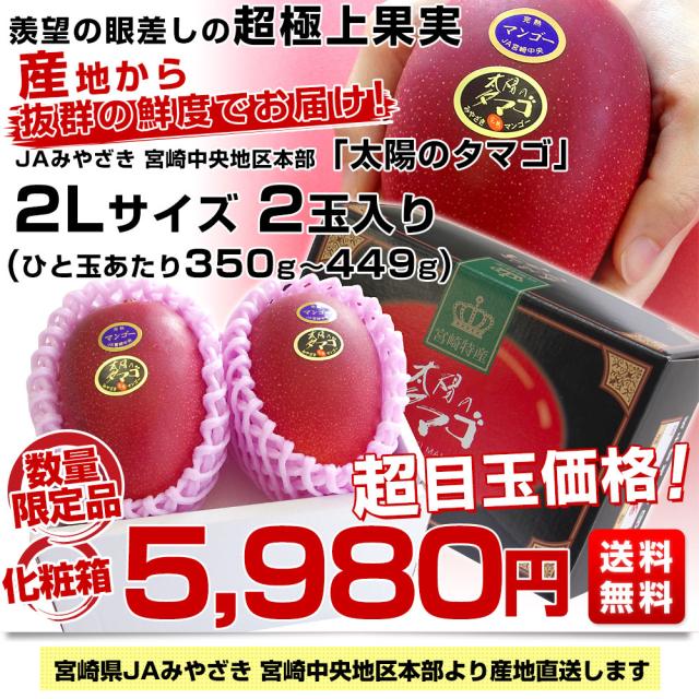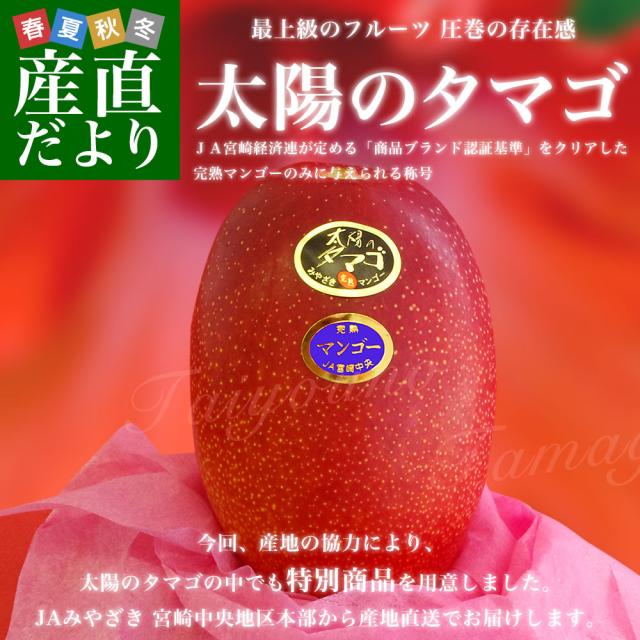 宮崎県より産地直送 JAみやざき宮崎中央地区本部 完熟マンゴー 太陽のタマゴ2L×2玉 (350gから449g×2玉) 送料無料 宮崎マンゴー 太陽のたまご お中元 ギフト【発送時期:カート内に記載しております】