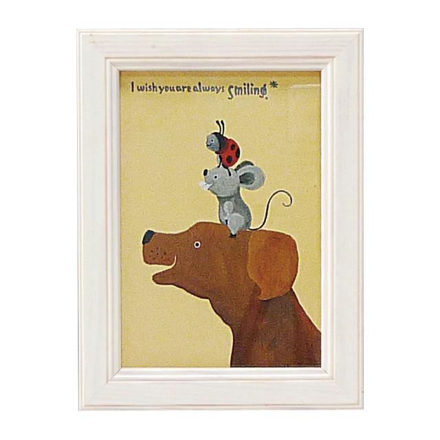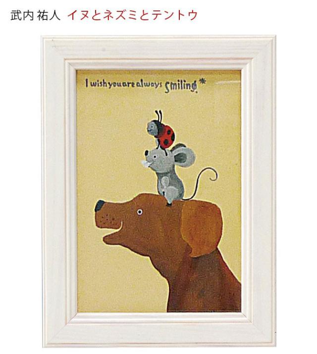 アートパネル 動物 18×13.5cm 武内祐人 犬 壁掛けアート アート パネル 北欧 壁掛け 卓上 両用 子供部屋 インテリア 小さい 絵 かわいい おしゃれ 武内祐人 イヌとネズミとテントウ アートフレーム
