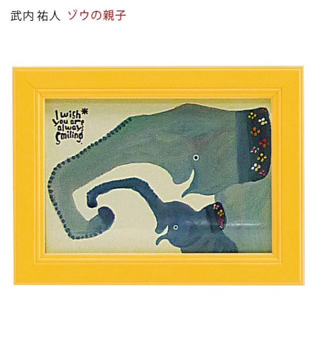 アートパネル 動物 18×13.5cm 武内祐人 ゾウ 壁掛けアート アート パネル 北欧 壁掛け 卓上 両用 子供部屋 インテリア 小さい 絵 かわいい おしゃれ 武内祐人 ゾウの親子 アートフレーム