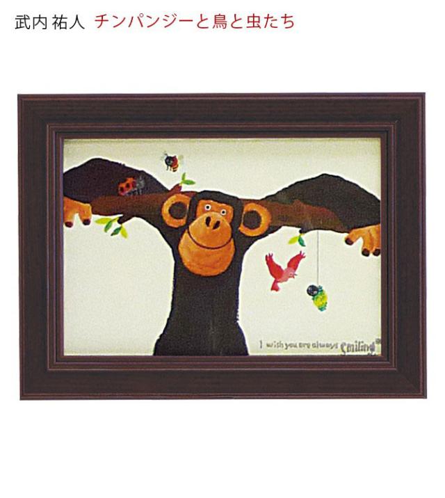 アートパネル 動物 18×13.5cm 武内祐人 チンパンジー 壁掛けアート アート パネル 北欧 壁掛け 卓上 両用 子供部屋 インテリア 小さい 絵 かわいい おしゃれ 武内祐人 チンパンジーと鳥と虫たち アートフレーム