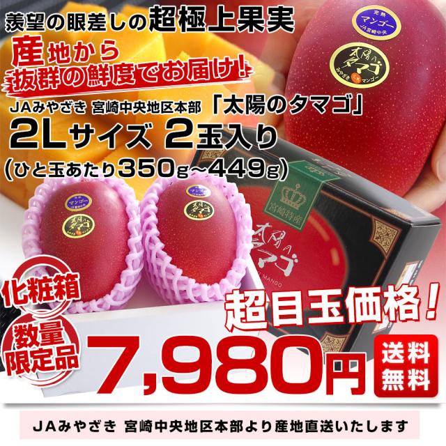 希少な4月発送 宮崎県より産地直送 JAみやざき宮崎中央地区本部 完熟マンゴー 太陽のタマゴ 2L×2玉 (350gから449g×2玉) 送料無料 宮崎マンゴー 太陽のたまご【発送時期:カート内に記載しております】