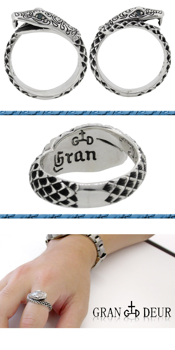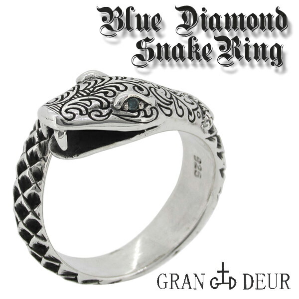 GRAN DEUR ブルー ダイヤモンド スネーク シルバー リング 15〜19号 シルバーアクセサリー メンズ 男性用 指輪 天然石 シルバー925 へび 蛇 巳 動物