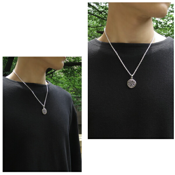 シルバーネックレス メンズ ブラックサファイア リーフコイン ブランド シルバーネックレス メンズ チェーン付 プレゼント