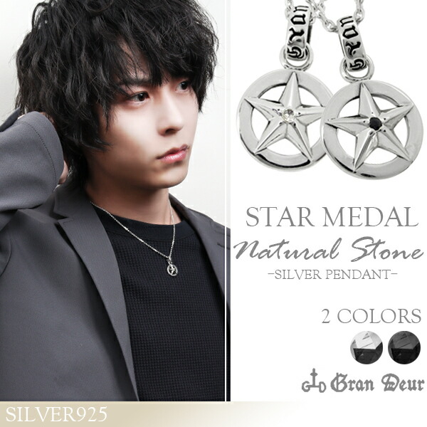 【GRAN DEUR】 選べる2種類 スター メダル ペンダント (45cmチェーン)
