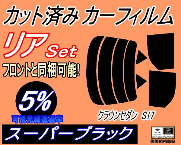 リア (s) クラウンセダン S17 (5%) カット済みカーフィルム リアー セット リヤー サイド リヤセット 車種別 スモークフィルム リアセット 専用 成形 フイルム 日よけ 窓ガラス ウインドウ 紫外線 UVカット 車用 170系 JZS171 JZS173 JZS175 JZS179 GS171 トヨタ