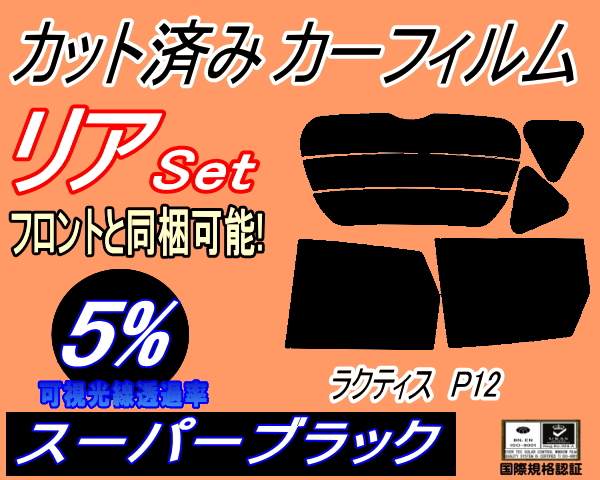 リア (s) ラクティス P12 (5%) カット済みカーフィルム リアー セット リヤー サイド リヤセット 車種別 スモークフィルム リアセット 専用 成形 フイルム 日よけ 窓ガラス ウインドウ 紫外線 UVカット 車用 120系 NCP120 NCP122 NCP125 NSP120 NSP122 トヨタ