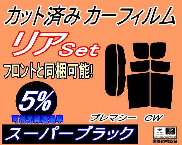 【送料無料】リア (s) プレマシー CW (5%) カット済みカーフィルム リアー セット リヤー サイド リヤセット 車種別 スモークフィルム リアセット 専用 成形 フイルム 日よけ 窓ガラス ウインドウ 紫外線 UVカット 車用 CWEAW CWEFW マツダ