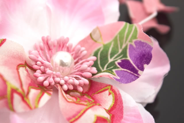 髪飾り コサージュ 花 フラワー ピンク ポピー ひなげし 和柄 パールビーズ 帯飾り 夏 ゆかた 髪留め 髪かざり ヘアアクセサリー