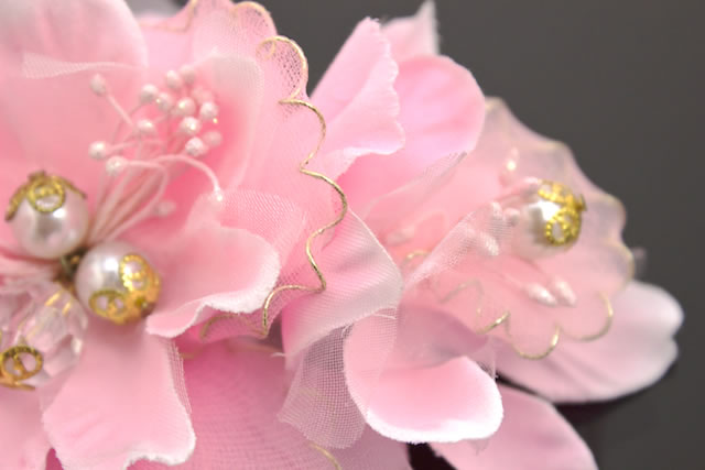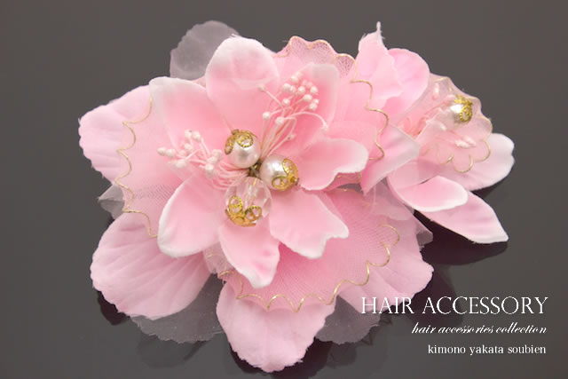 髪飾り コサージュ 花 フラワー ピンク パールビーズ ゴールド 帯飾り 夏 ゆかた 髪留め 髪かざり ヘアアクセサリー